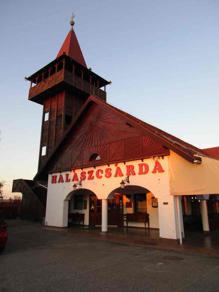 Kraniche sehen wir abends nicht mehr, haben aber vom Turm der Halaszcsarda einen tollen Sonnenuntergang und Blick auf die vielen Fischteiche, deren Fische in dieser Gaststätte auf den Tellern landen.