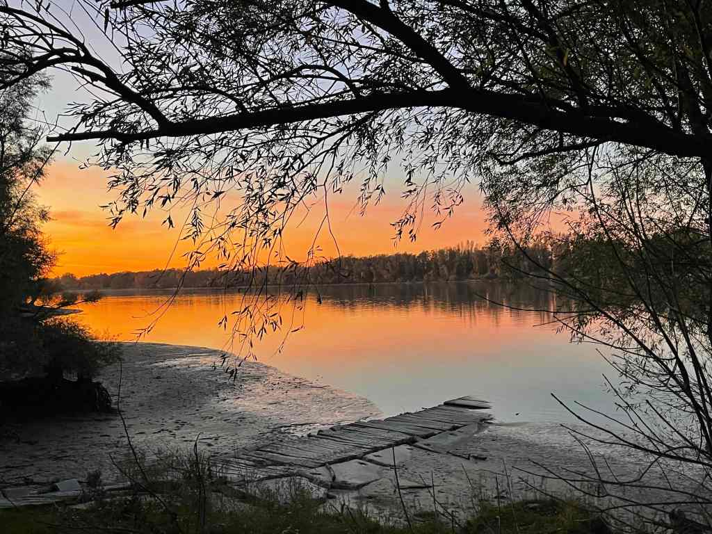 Auf der Autobahn kommen wir schnell voran, rauschen an Wien vorbei und legen dann einen Stop am Neusiedler See ein. Das Wasser liegt spiegelglatt vor uns bis es am Horizont mit der Sonne verschmilzt.