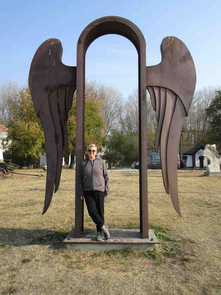 Temperatursturz – morgens 4 Grad Minus. Zum Morgenspaziergang an der Donau begleiten uns streunende Hunde. Die ersten Wohnwagen werden aufgebaut, weil die Leute ihr WE mit Angeln verbringen. Cetate ist ein interessanter Ort mit diesem schön sanierten Haus eines Dichters und jeder Menge Skulpturen.