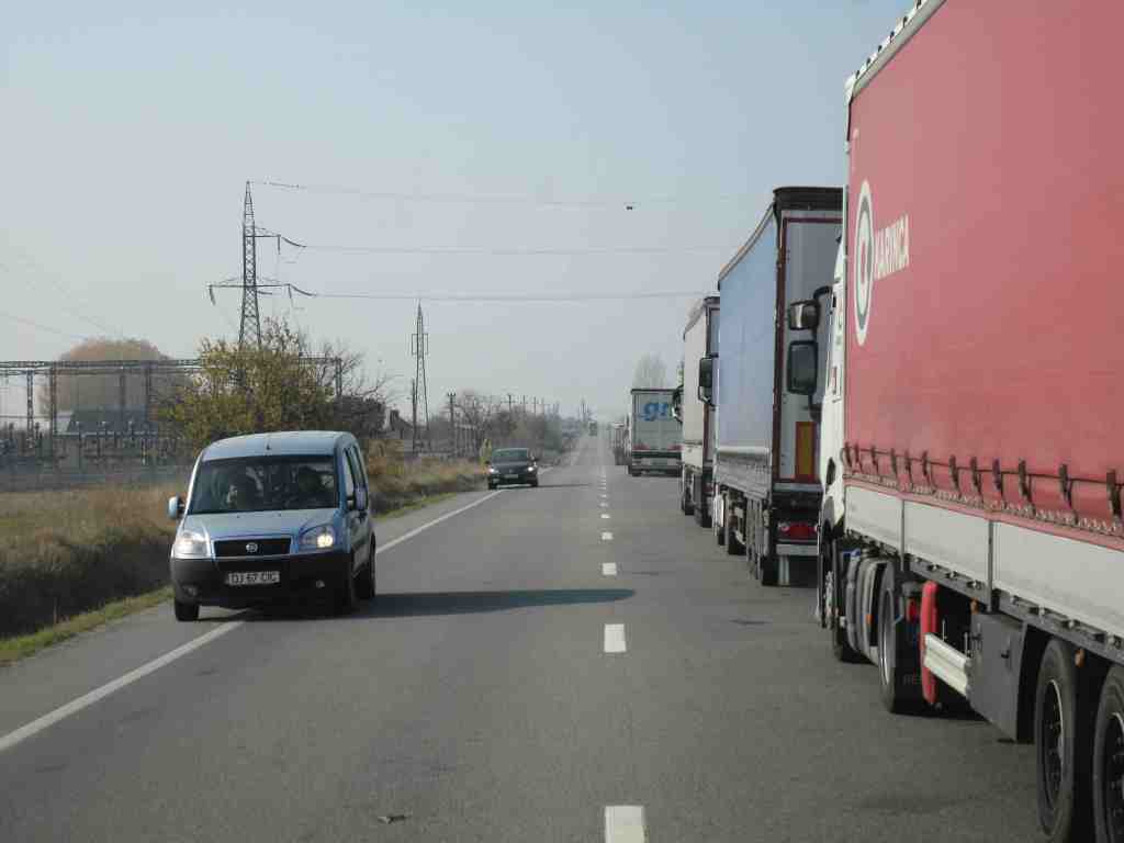 Die Fahrt über die Grenze nach Rumänien verläuft für PkW völlig problemlos, allerdings nehmen die LKW-Schlangen kein Ende.