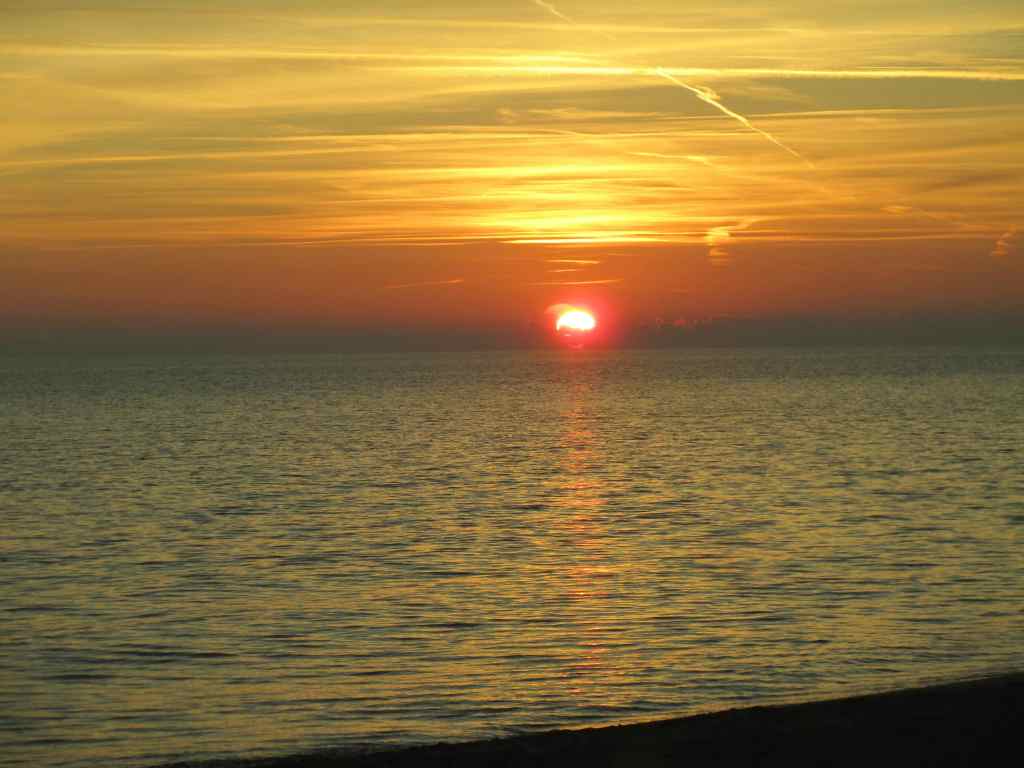 Abends genießen wir den Spaziergang am breiten Strand bei Sonnenuntergang. Ganz wenige Wagemutige schwimmen noch im Meer – ohne Neoprenanzug! Angler versuchen ihr Glück. Wir bleiben noch einen weiteren Tag, weil der Strand fast menschenleer ist und uns ein kleines Katzi in Beschlag nimmt. Nach anfänglicher Scheu ist sie so anhänglich, dass sie auf meinem Schoss liegt und zufrieden schnurrt. Mit dem Milchtritt markiert sie die ganze Zeit ihren neuen Schlafplatz – in ihren Pfoten befinden sich Duftdrüsen. Soviel Zuneigung und Vertrauen – am liebsten würden wir sie mitnehmen s. a. Katzi spezial. Neben unserem Futter kommt am Nachmittag noch jemand und schaut nach ihr. Sie ist also gut versorgt, wenn wir ohne sie weiterziehen.