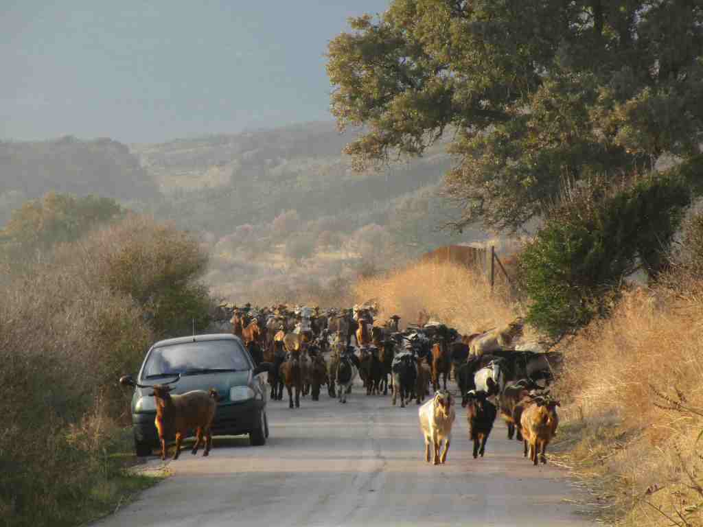 Den Tag verbringen wir gemütlich. Ein großer Hund leistet uns bald Gesellschaft. Am Abend wird eine riesige Ziegenherde über die Felder getrieben und wir mittendrin.