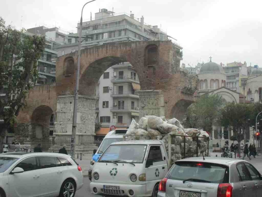 Dann fahren wir nach Thessaloniki ins genaue Gegenteil. Diese Stadt erschlägt uns. Der Black Friday und die Eröffnung der Metro – nach 40 Jahren! – lockt wohl alle Bewohner aus ihren Häuserschluchten. So viele Menschen in so engen Straßen haben wir noch nirgendwo gesehen. Das überfordert uns total! Bei der Suche nach einem Parkplatz erhaschen wir im Vorbeifahren einen Blick auf die eine oder andere Sehenswürdigkeit u.a. der Weiße Turm, das Wahrzeichen der Stadt, den Galeriusbogen und den Alexandergarten direkt am Meer. Letztendlich stehen wir im Parkverbot. Wir behalten Thessaloniki nicht in guter Erinnerung. Es ist uns ein Rätsel, wie die Menschen, die in so einer engen Stadt leben, trotzdem soviel Spaß haben. Kaffees und Bars gibt es genügend, das Leben verlagert sich nach draussen.