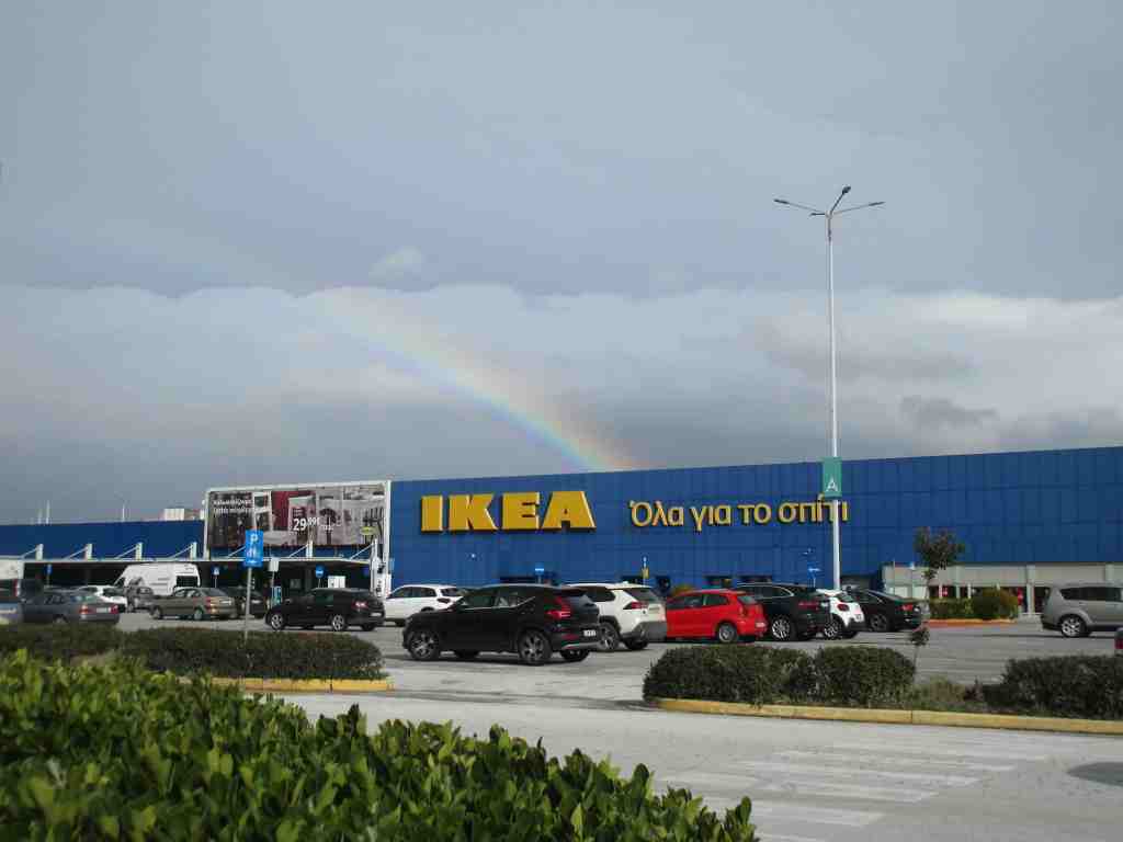 Neben der gesundheitlichen Situation, die etwas zu wünschen übrig lässt, haben wir noch das Problem starker Sturmböen bis 80 km/h. Die Wetterapp hat uns rechtzeitig gewarnt aber wo Schutz suchen? Unter Berücksichtigung von Starkregen und Wind scheint uns Ikea abseits des Zentrums von Thessaloniki ein sicherer Ort. Das Gebäude hält Wind ab, die Parkplätze haben keine Bäume und das Regenwasser läuft nicht über.