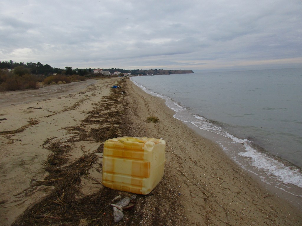 Vom Ikea-Parkplatz ziehen wir zurück an den Strand. Der Wind hat sich gelegt. Am Abend glitzert das ganze Panorama von Thessaloniki über dem Meer. Neben uns steht ein illuminierter Schlitten mit Weihnachtsmann. Nach Weihnachten ist uns nicht zumute, als wir am Strand die Überreste vom Sturm sehen – kilometerlang Plaste – irgendwo lesen wir, dass es hier immer so aussehen soll?