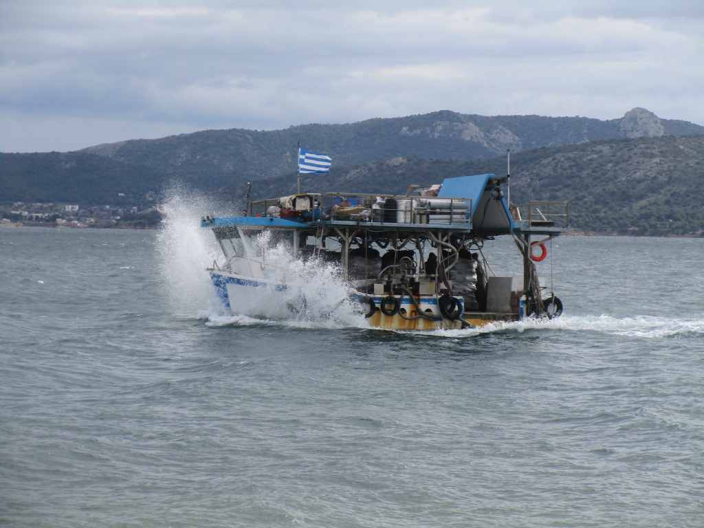 Roma sind gerade per Schiff in der Bucht unterwegs – diesmal als Holztransporter. Bisher haben wir sie nur an Land gesehen, wo sie mit Megaphon ihre Altmetallsammlung ankündigen. Sie horten alles auf ihren Pritschenwagen. Was sich später nicht verwertet lässt, landet auf ihren Grundstücken, ein Sammelsurium, zwischen Kindern, Wäschetrockner und Beeten. Sie wohnen am Rande der Städte und sind der ärmste Bevölkerungsteil Griechenlands. Häufig stehen weibliche Roma vor Supermärkten und betteln. Die Männer haben wir auf den Feldern arbeiten sehen oder sie sind eben als Schrottsammler unterwegs. Es gibt wohl in ganz Europa Projekte Roma zu integrieren, doch sie werden weiter diskriminiert.