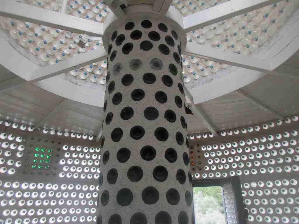In Griechenland blüht und summt es überall wie im Sommer. Diese Blütenpracht finden wir auf einem Stück Land am Rande des Weges im Zeliosgarden – die Vielfalt der Pflanzenwelt Griechenlands mit all seinen Gerüchen und Farben ist hier vertreten. Herzstück ist der Glasstower aus unzähligen recycelten Flaschen gebaut.