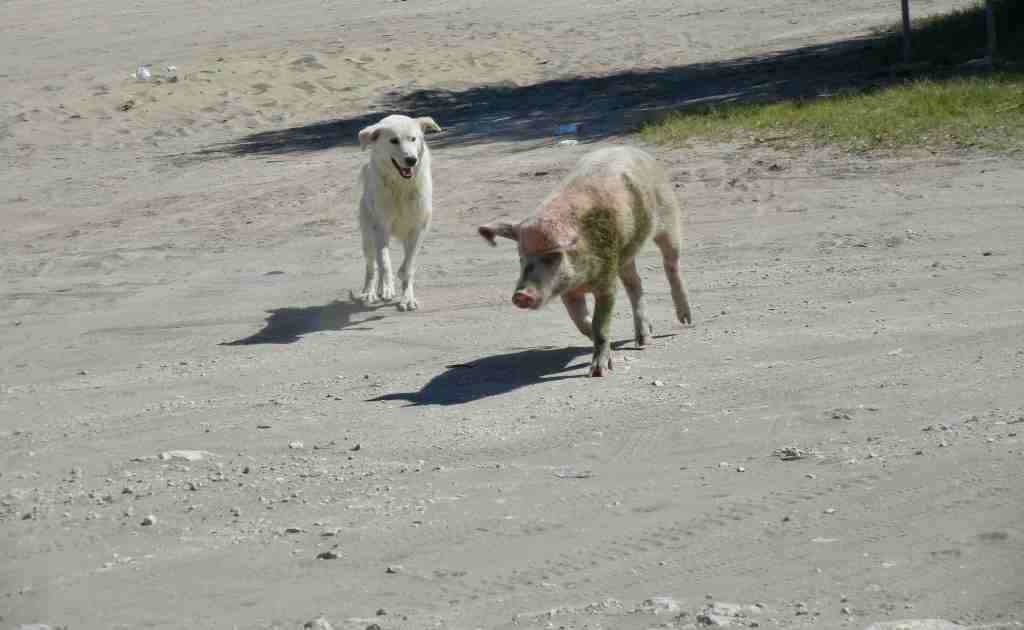 Die Zufahrt zum nächsten Strand ist holprig. Bei Regen wäre sie nicht mehr befahrbar. Dafür werden wir mit einem wunderschönen Strandblick auf eine kleine vorgelagerte Insel belohnt. Dahinter sehen wir die Inseln Kalamos und Kastos.Im Hintergrund hören wir den ganzen Tag das Glockengeläut der Ziegen.
