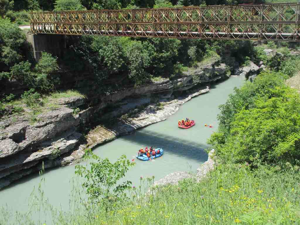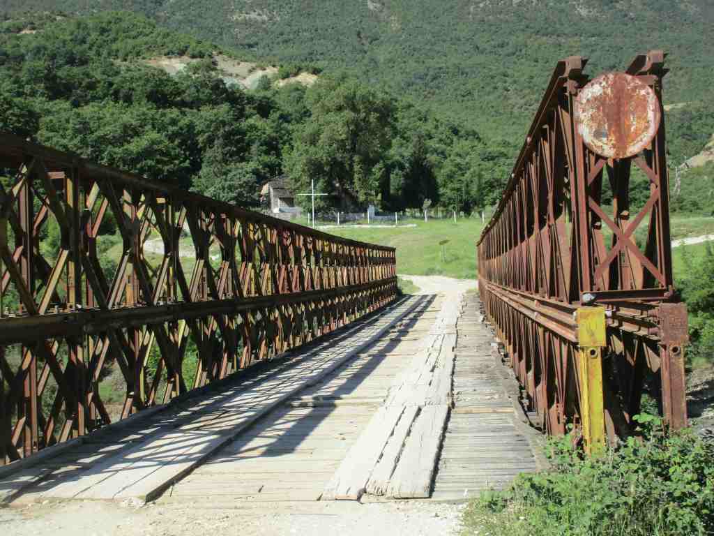 Noch dazu ist sie so neu und glatt mit vielen Serpentinen. Das lockt sogar die Fahrradfahrer auf die Piste. Gerade die Serpentinen vor Carcove bis wir fast an der griechischen Grenze sind besonders schön – und anstrengend. Dahinter suchen wir uns auf einer netten Wiese oberhalb des Flusses einen Platz mit Blick auf die Berge.