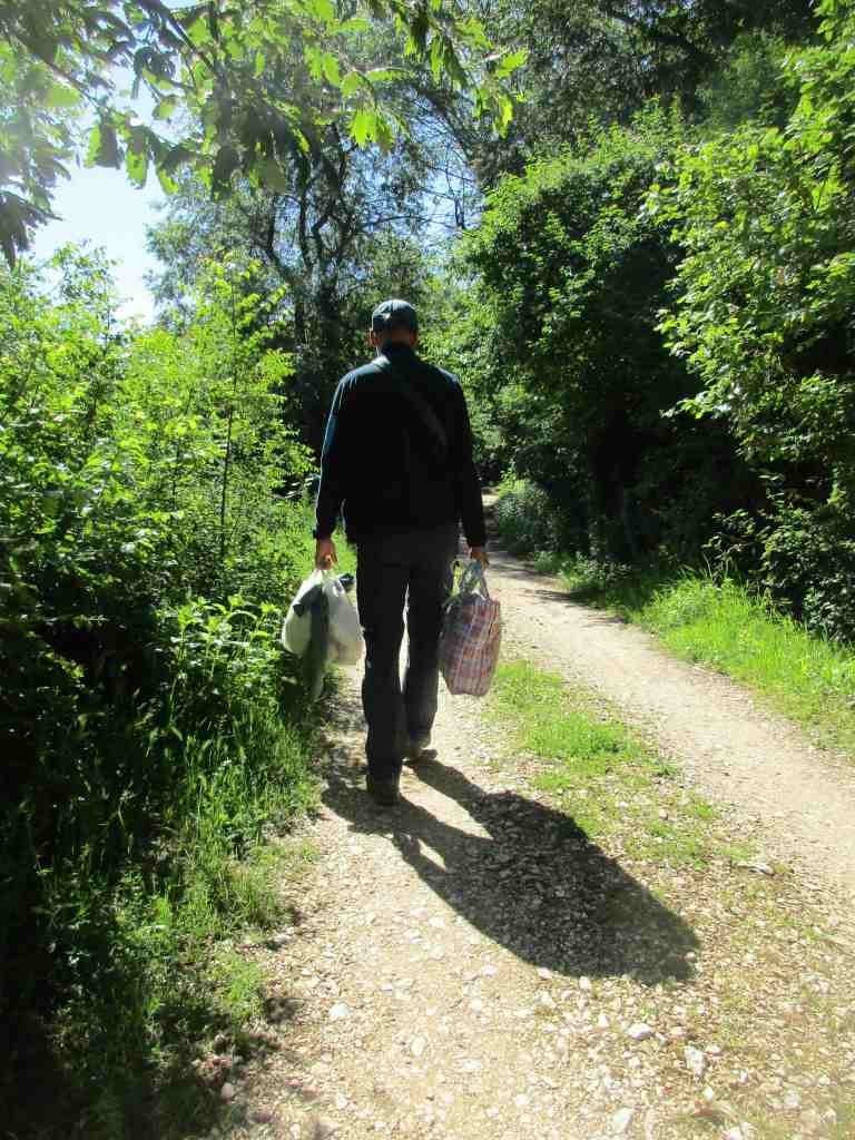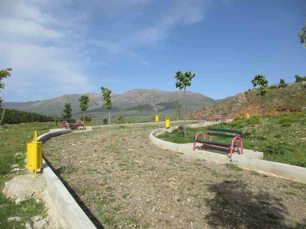 Wir stehen genau neben eine ehemalige Müllkippe. Die wurde mit EU-Geldern renaturiert. Auf dem ehemaligen Müllkippenberg wachsen jetzt dünne Bäumchen und eine absurde Anzahl von bunten Bänken flankieren den Weg. Hier wurden EU-Gelder versenkt. Niemand kommt und nutzt diesen „Park“. Lediglich der Hirte treibt seine Schafe hier hoch und die sitzen wohl kaum auf Bänken.