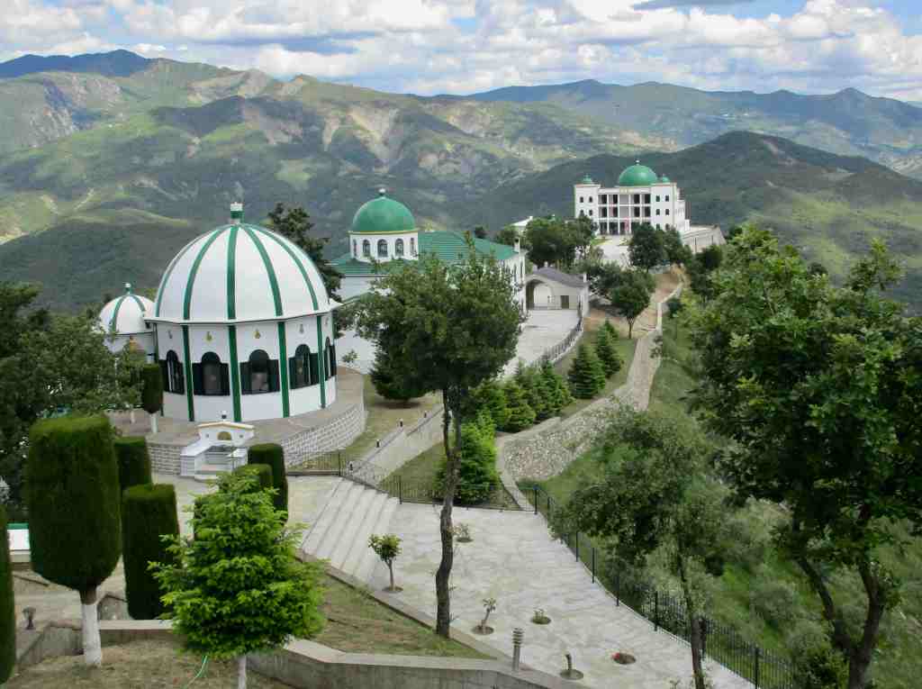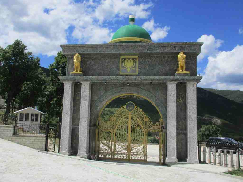 Oben angekommen, finden wir einen Palast vor. Hinter einem goldenen Tor verbirgt sich das Wunder von Baba Alis Tekke auf dem Gipfel des Alipostivan-Hügels. Das Tor ist mit wunderschönen Steinen verschiedener Art gebaut und so prächtig gestaltet, dass man es kaum erwarten kann, auf die andere Seite zu gelangen.