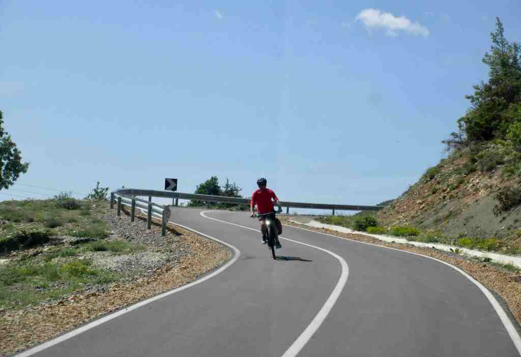 Die Nächte bleiben kalt – 6 Grad. Am Tage ist es dann sehr sonnig und warm. Bei 25 Grad setzten wir die Fahrt auf der neuen Asphaltstraße fort. Die ist ein EU-Sponsoring. Wir sehen viele Radfahrer jeden Alters, die die glatte Straße mit ihren E-Bikes hoch und runterfahren, die vielen Serpentinen hinunterzufahren sieht richtig spaßig aus.