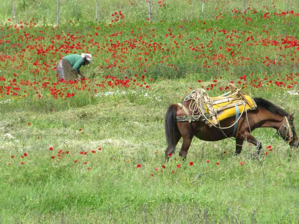 Die nächste größere Stadt Korca durchfahren wir, bis wir endlich zum ersten der beiden Seen gelangen, dem großen Prespasee. Von oben liegt nicht nur der See sondern auch Felder vor uns, die noch per Hand und Sense bearbeitet werden. Überall stehen kleine Eselchen oder Pferde als Transporthilfen bereit.