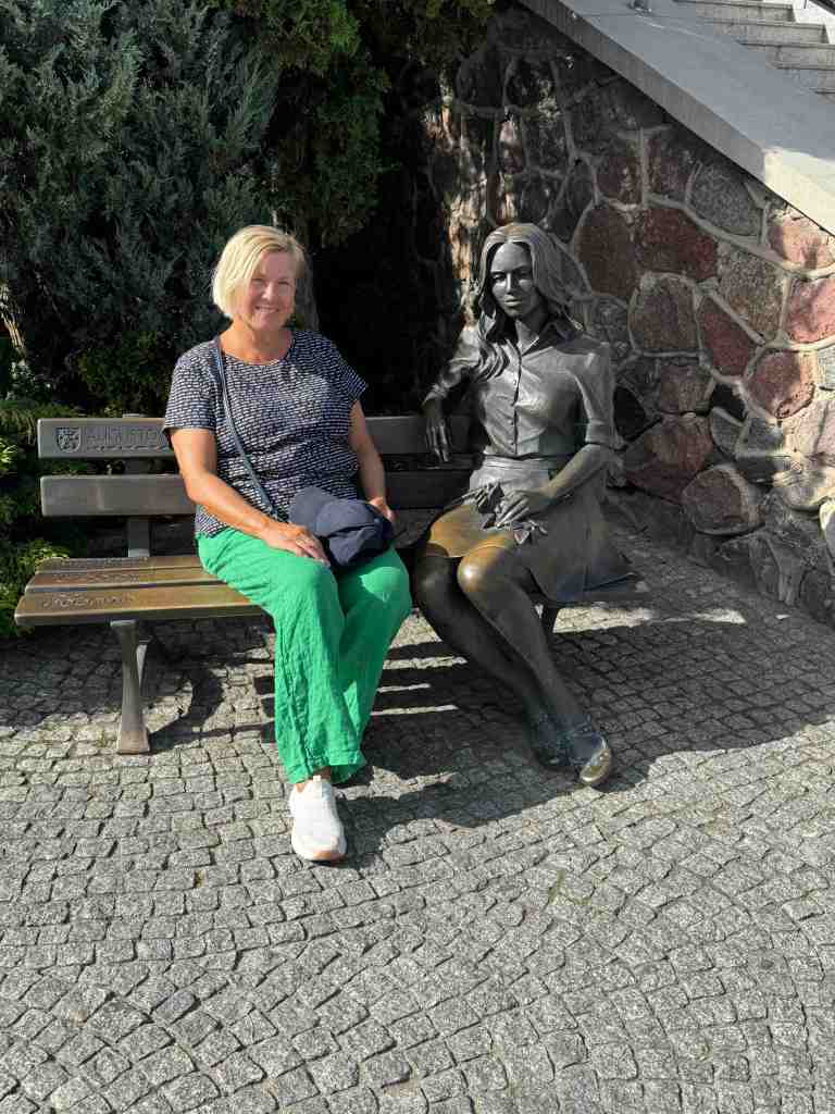 Die polnischen Urlauber sind ganz verrückt nach einem Selfie mit der hübschen Beata. 1962 hat sie angeblich im Restaurant Albatros gearbeitet und ein Sänger hat sich schwer verliebt in sie, ihr natürlich ein Liebeslied gewidmet, womit er einen richtigen Knaller gelandet hat. Wohl jeder Besucher von Augustow, der am Restaurant Albatros vorbeikommt, setzt sich auf die Bank neben die bronzene Schönheit.