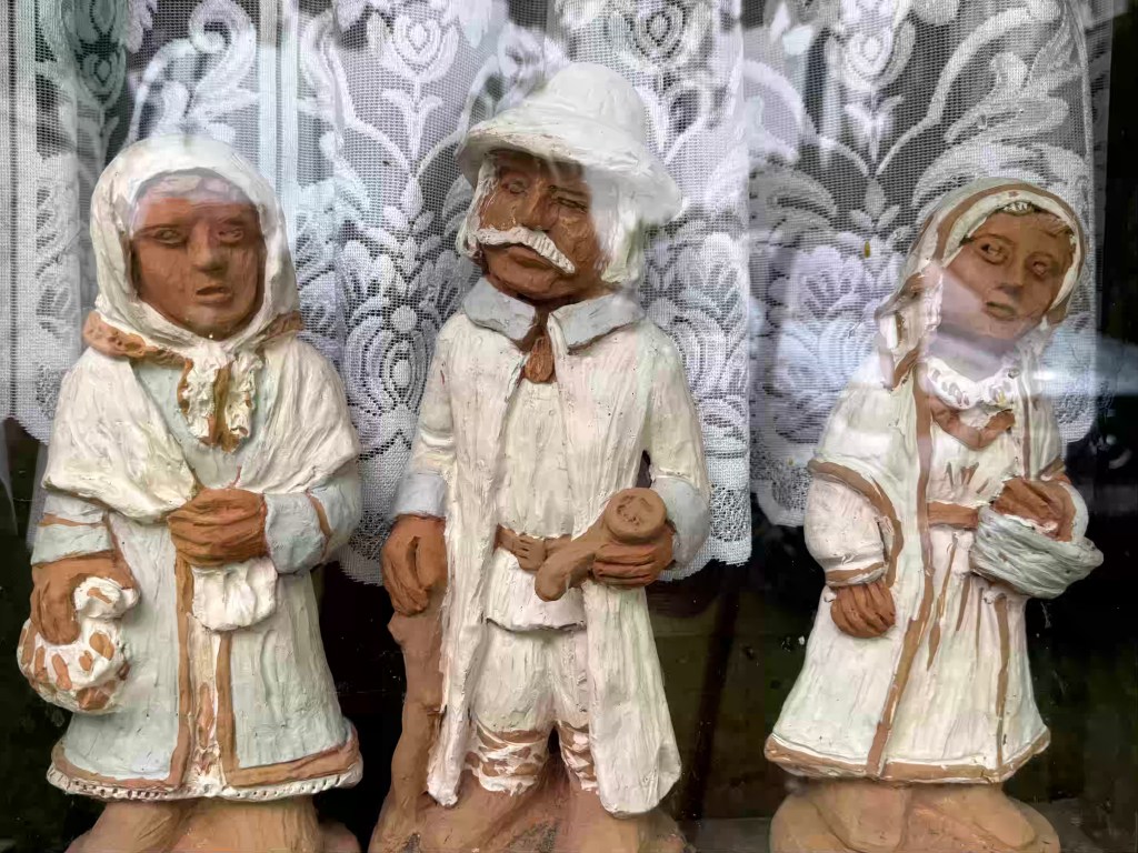 Ein kleines süßes Häuschen in Pieski hat übrigens 2000 Bewohner! Eine Frau namens Walentyna Dermacka hat die Volkskultur der Region so fasziniert, dass sie zuerst Alltagsgegenstände und Souvenirs sammelte und später kleine Figuren einer Keramikbildhauerin, die das ländlichen Leben darstellen. Sie sollen überall im Haus verteilt sein – leider ist das Museum geschlossen und so muss ich mich mit der Fensterdeko zufrieden geben.