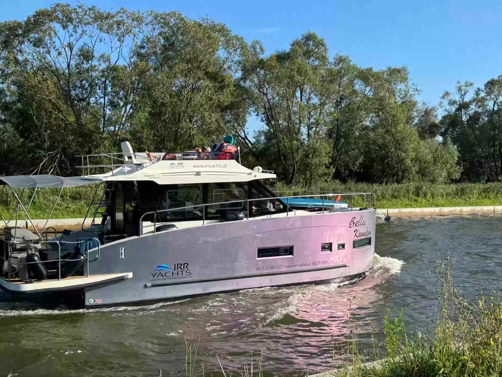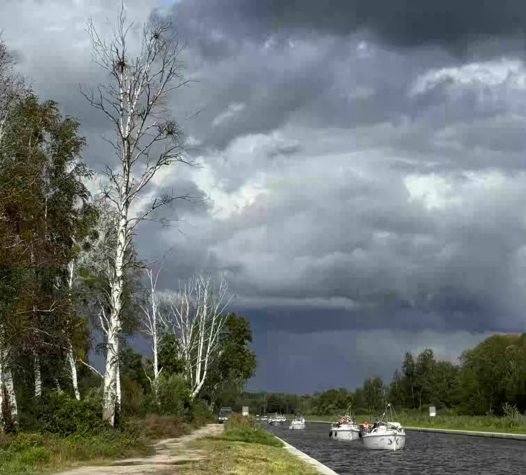 Schiffe gucken ist unterhaltsam, wenn die Yachten nur 5 Meter neben einem vorbeischwimmen. Sie müssen im Kanal ihre Geschwindigkeit drosseln. Manche Freizeitkapitäne schwingen sich zu einem müden oder erfreuten Winken auf, wenn sie uns entdecken. Wir winken IMMER zurück. Es lebe die deutsch-polnische Freundschaft!
