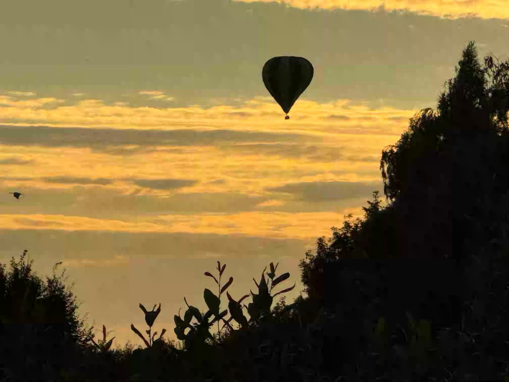 Mit jedem Boot, das an uns vorüberzieht gibt es Wellengang im Kanal und es dauert ein Weile bis sich das Wasser wieder beruhigt und leise vor sich hinplätschert. Die Sonne ist wieder da! Am Abendhimmel steigen Ballons auf.