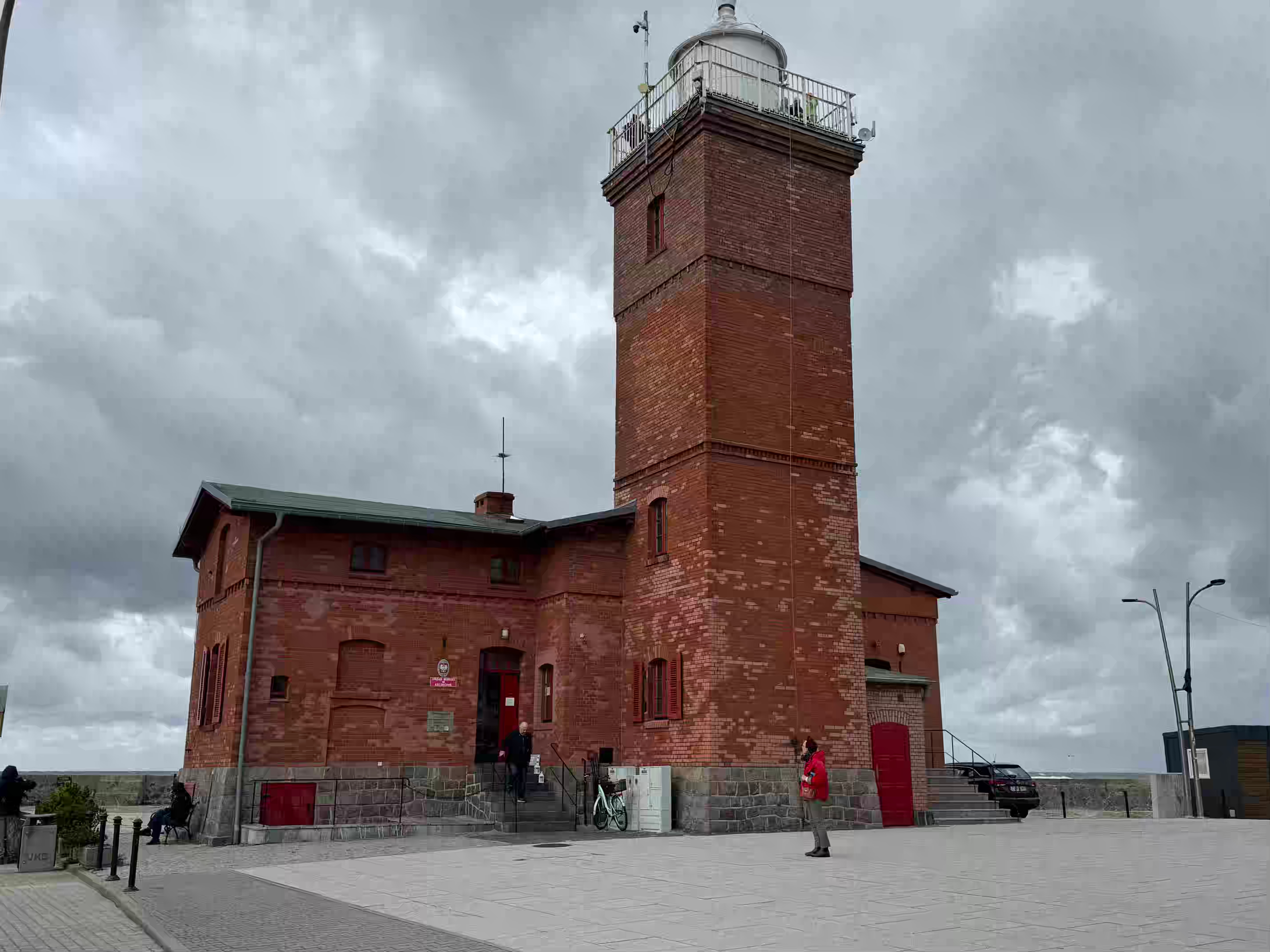 Im Sturm erobern wir den Leuchtturm von Darlowo. Früher stand nur er an der Mole, inzwischen ist alles zugebaut mit Hotels und dem ganzen bunten Budenzauber, den man aus Polen so kennt – Souvenierstände, Lody, Klamotten, Futterluken….