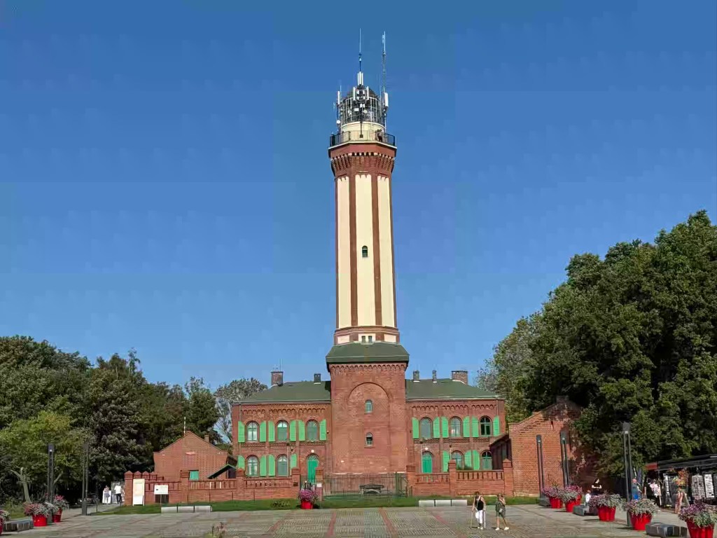 Das Wetter meint es gut mit uns, der Sommer ist noch einmal zurückgekehrt. Wir erobern den Leuchtturm von Kolberg. Es ist WE und ganz Polen scheint mal wieder auf den Beinen zu sein. Das kennen wir ja schon. Nachdem wir frisch geräucherten Lachs und Dorsch zum Mittag verspeist haben, besteigt Hendrik den Leuchtturm.