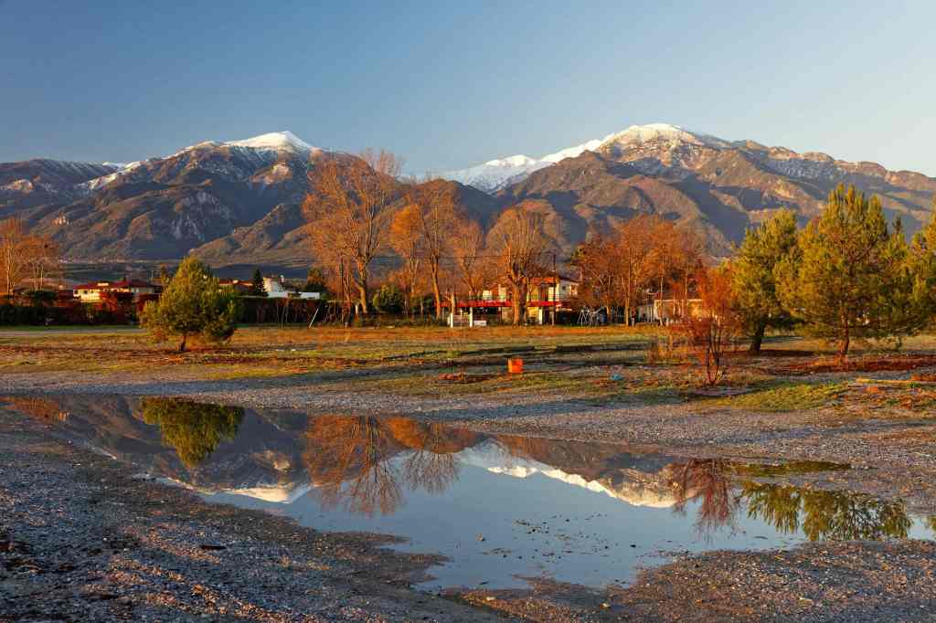 Bergdorf Panteleimonas mit Blick auf den Olymp