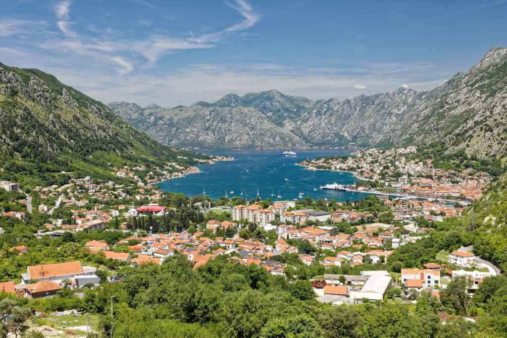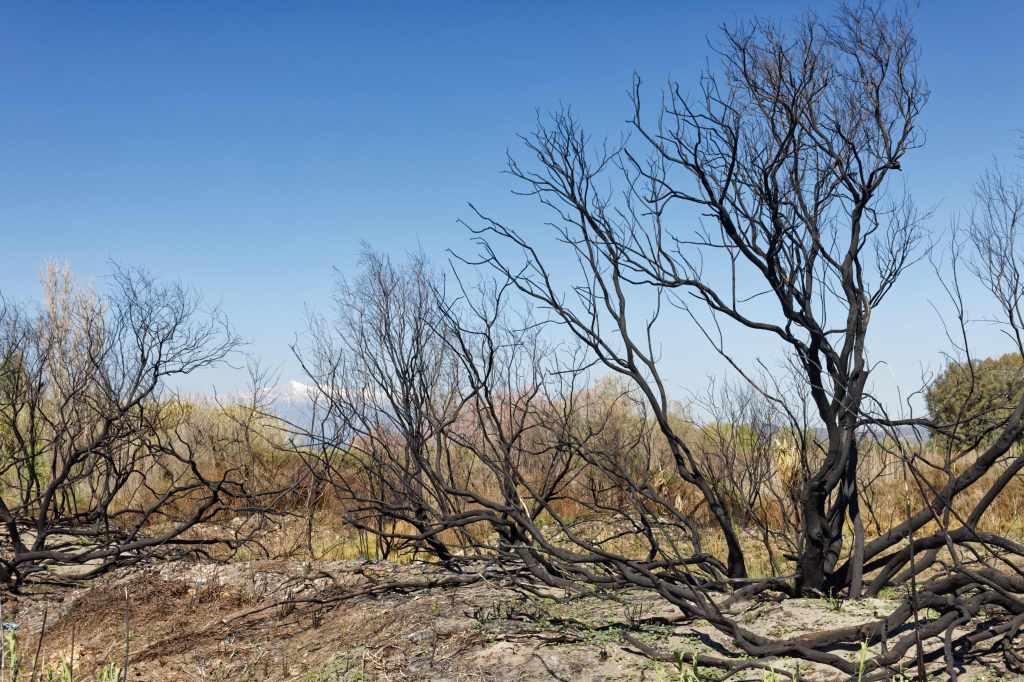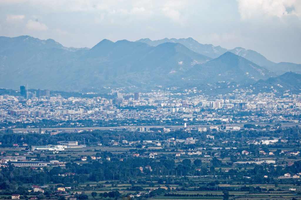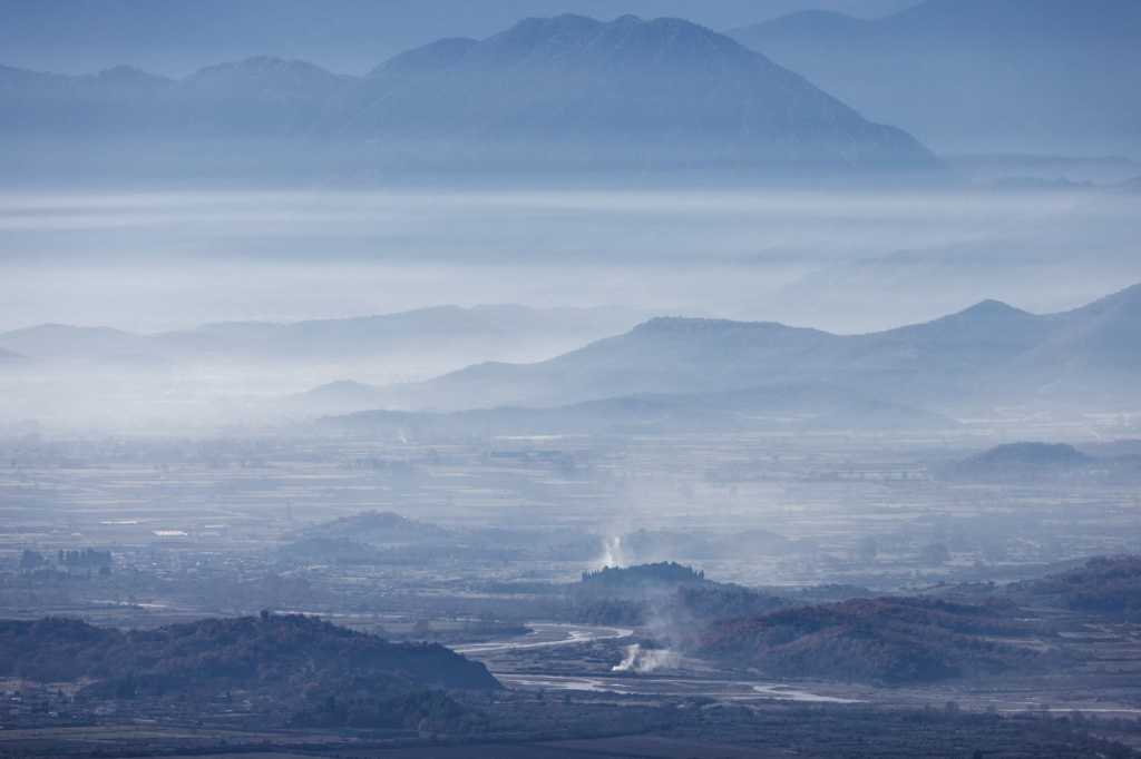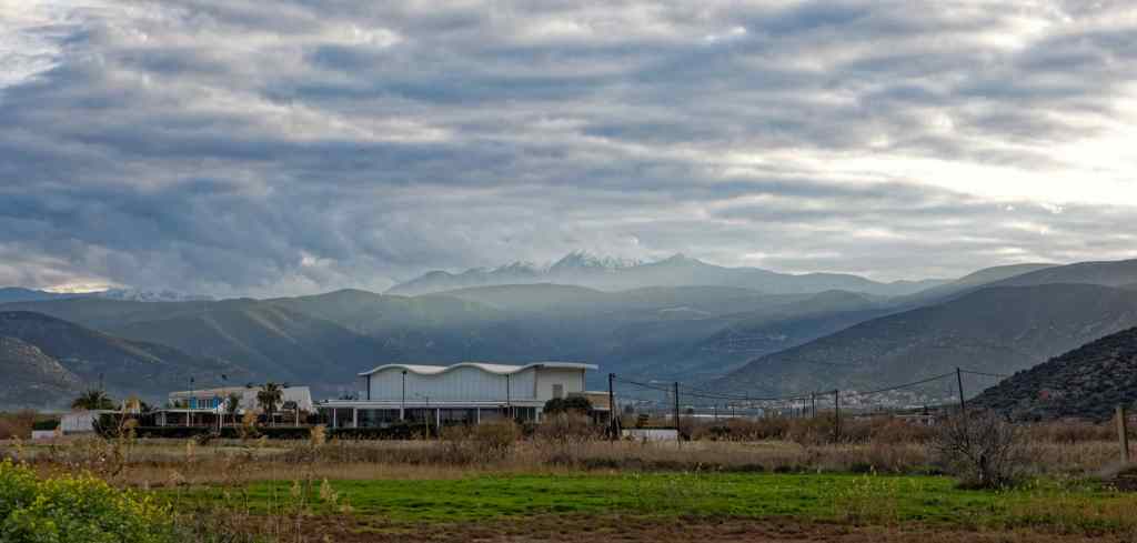 Blick übers Gebirge, dahinter liegt Kalamata und das Meer