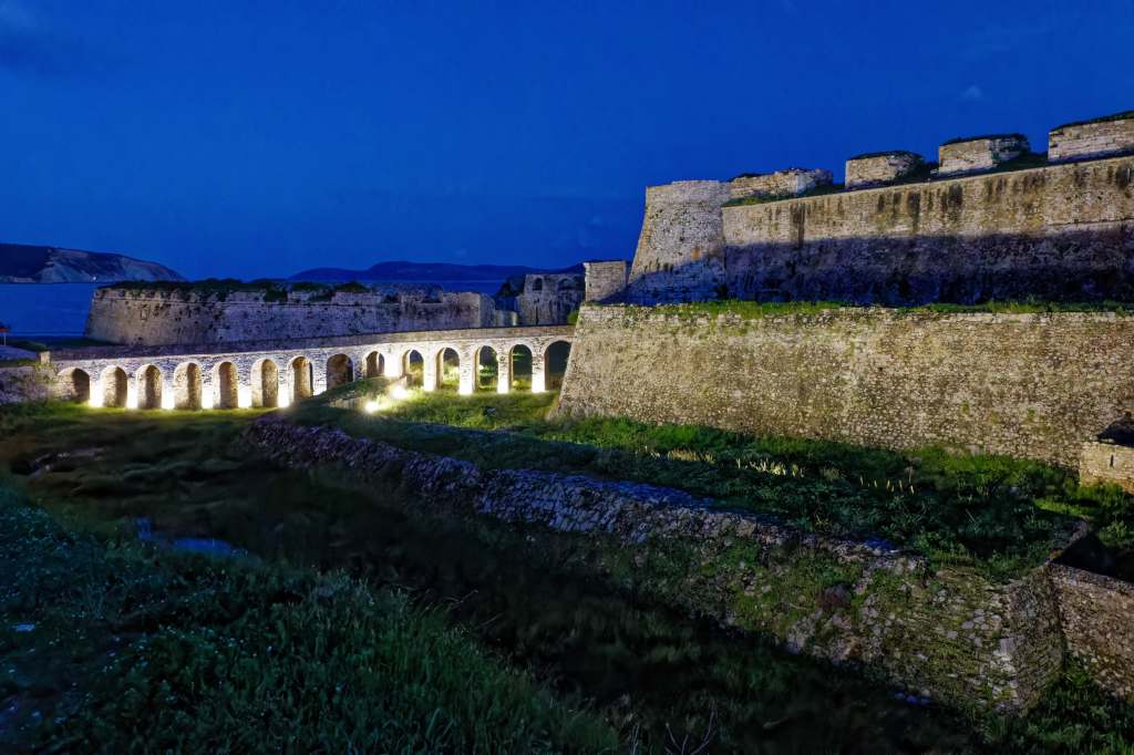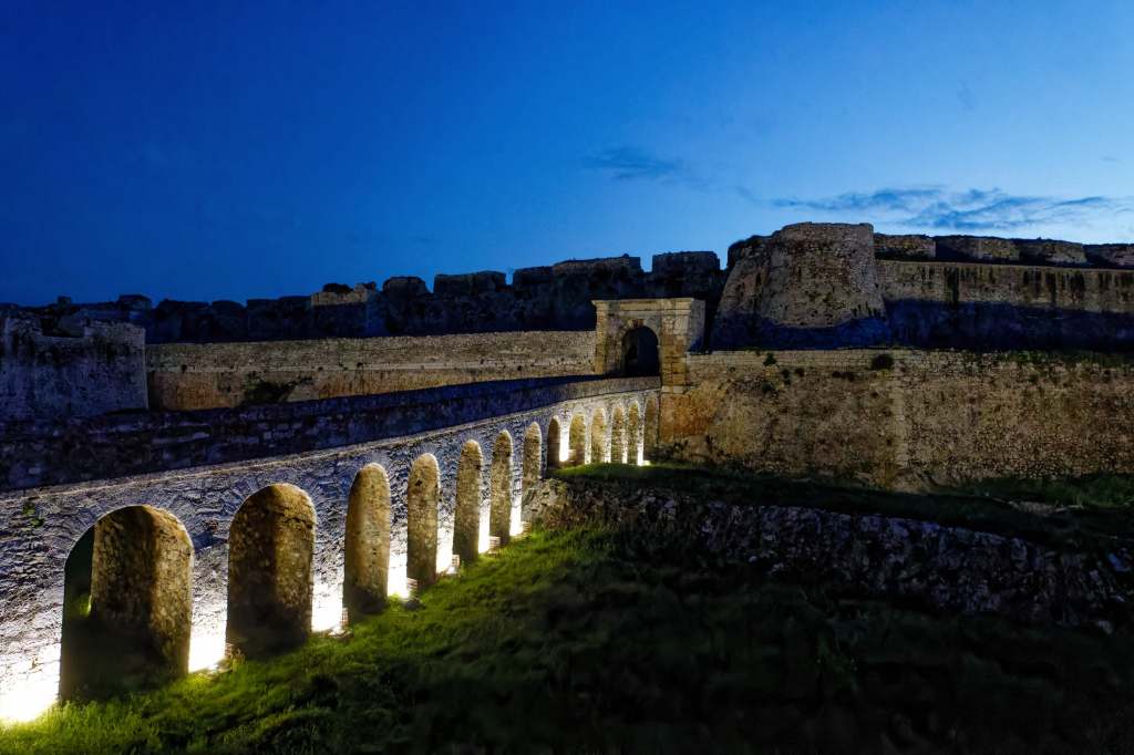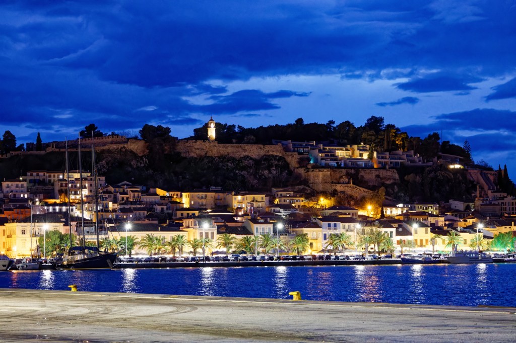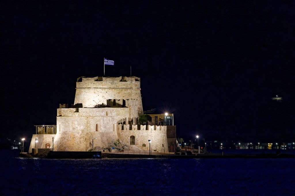 Nafplio mit vorgelagertem Kastel Bourtzi bei Nacht