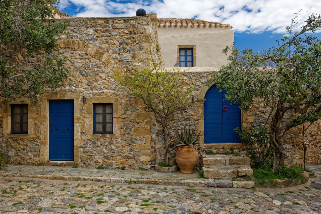 typischer Steinbau für Mani-Trutzig und Jahrhunderte haltbar